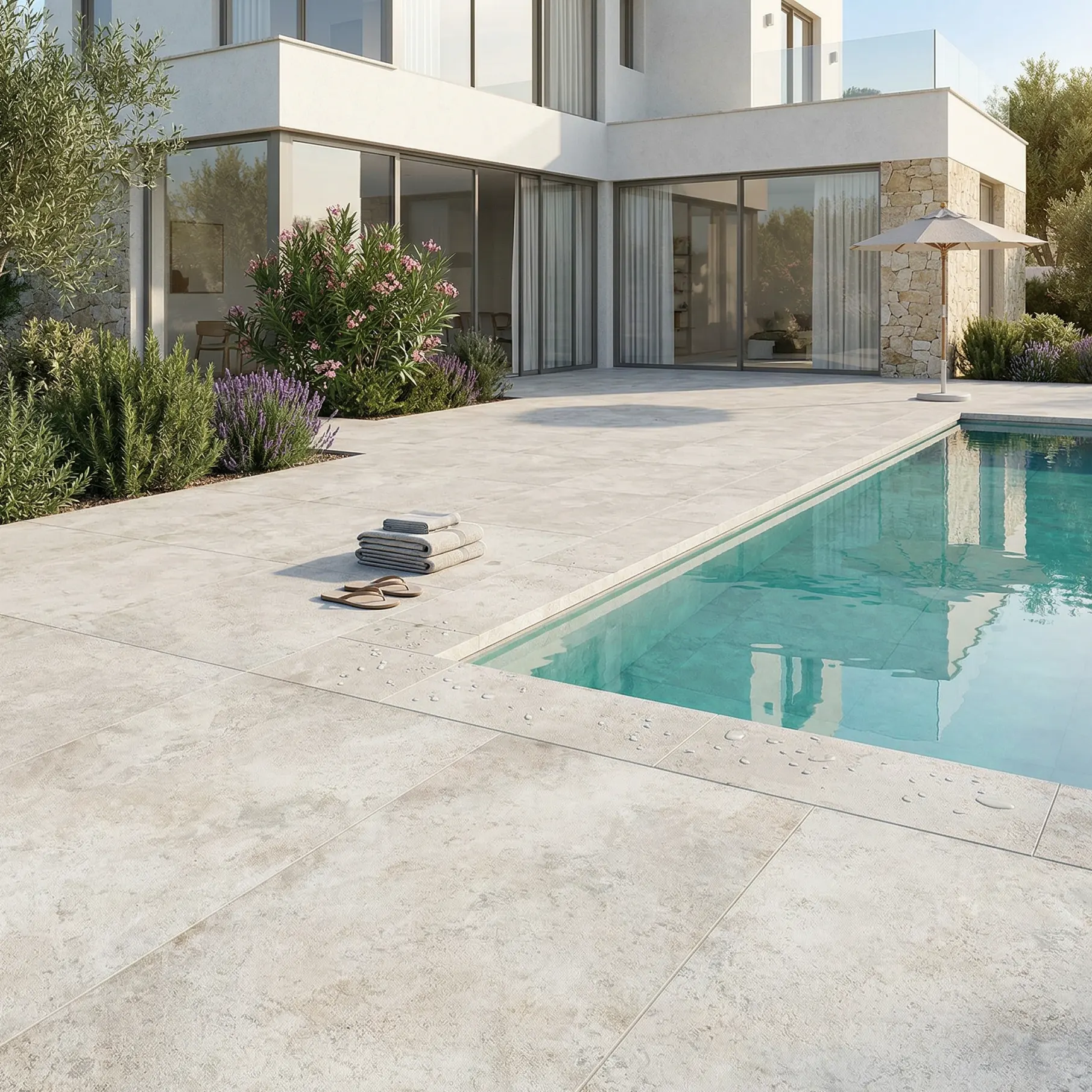 שימושים: ריצוף וחיפוי פנים, סלון, מטבח, חדרי רחצה, מסדרונות, חללים ציבוריים, משרדים ומרפסות מקורות. מתאים במיוחד לחללים שבהם רוצים ליצור תחושת מרחב, מראה מואר, נקי ועל־זמני עם רמת בטיחות משופרת.