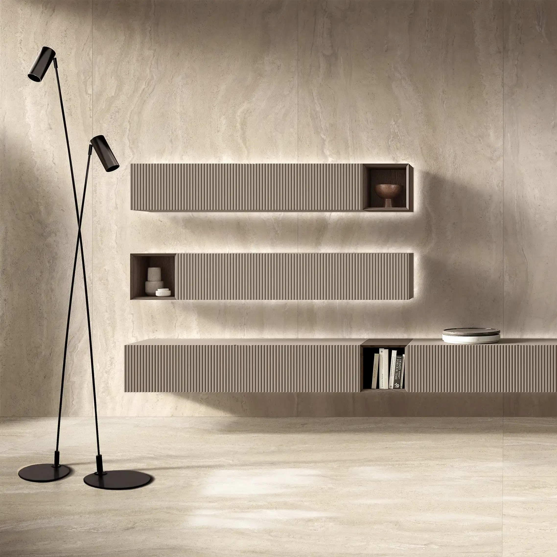 אריח פורצלן מדוקק איטלקי דמוי טרוורטין, במידה 120/280 ס"מ עובי 6 מ"מ